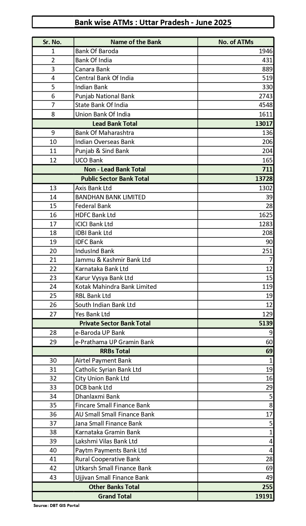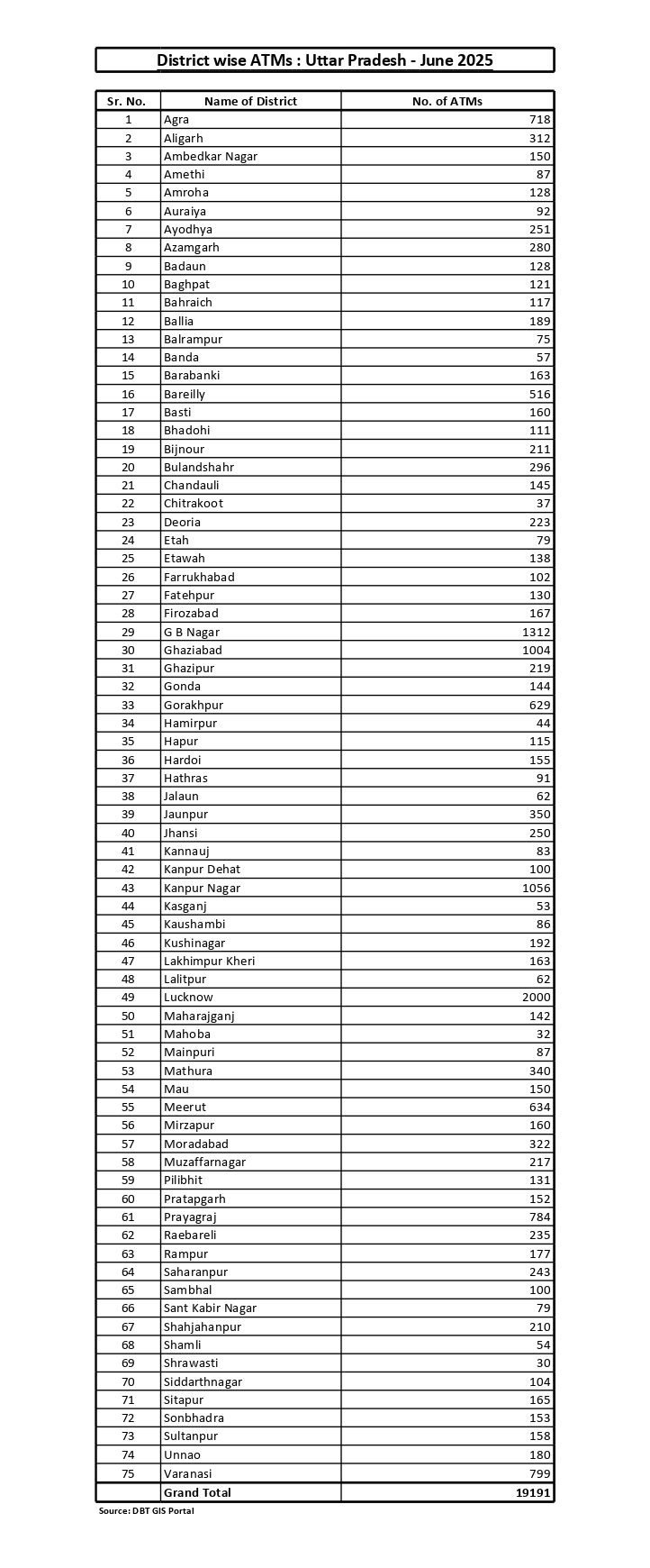 बैंकिंग आउटलेट - शाखाओ की सुचना (जिलेवार)