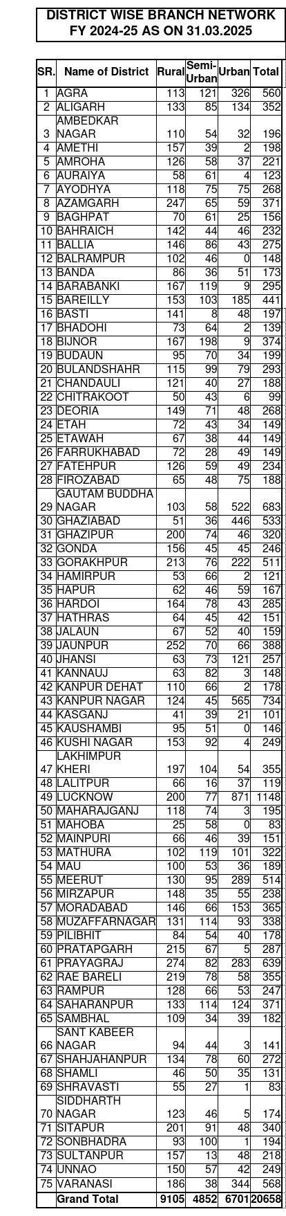 बैंकिंग आउटलेट - शाखाओ की सुचना (जिलेवार)
